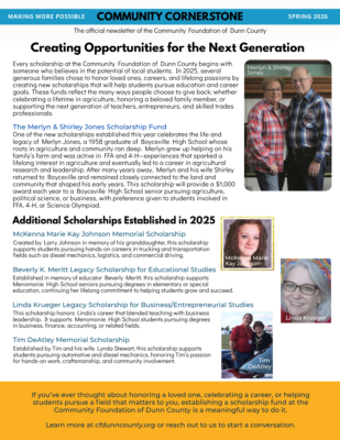 A donor-advised fund is one of many types of funds that an individual, family, or business can establish with the Community Foundation of Dunn County. You’re likely more aware of donor-advised funds than other types of funds because they are frequently covered in...