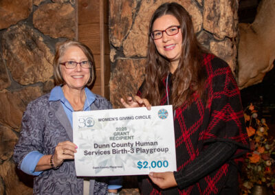 This year, the Women’s Giving Circle proudly awarded grants to Arbor Place, Inc., The Bridge to Hope, Colfax Public Library, Dunn County Human Services Birth to 3 Program, Hoofbeat Therapeutic Healing Center, The Mabel Tainter Theater, Menomonie Police Department, Sleep in Heavenly Peace, Stepping Stones of Dunn County, and the Wisconsin Foster Closet. Each organization embodies the Circle’s mission of empowering women to strengthen our community through meaningful philanthropy.